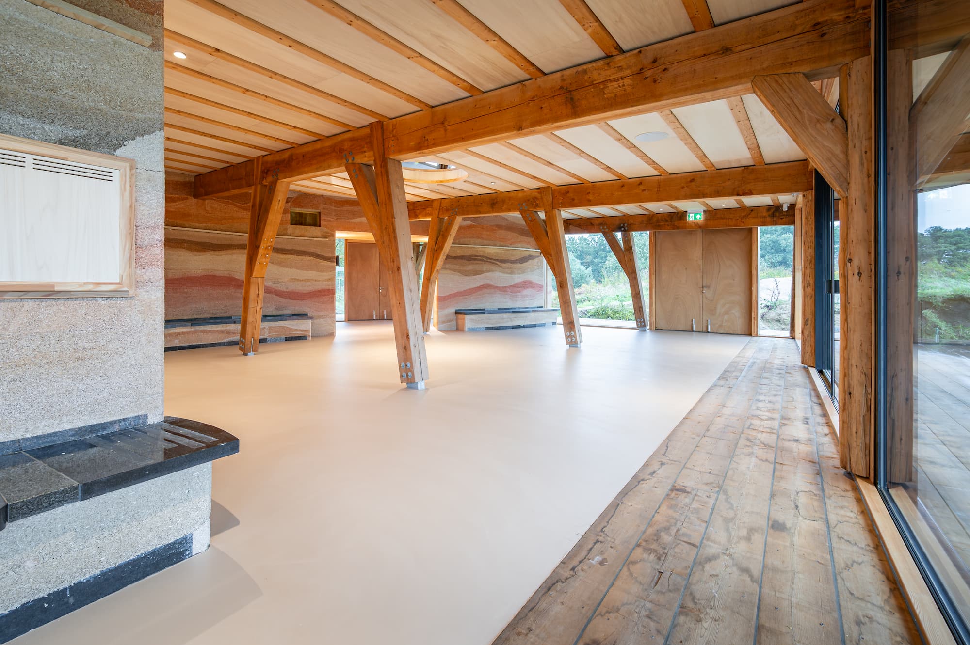 Op deze bijzondere plek is een zogenoemd Ceremoniegebouw gerealiseerd. Het gebouw bestaat uit een eenlaags gebouw met een zwevende begane grondvloer, uitgevoerd in hout. De opbouw bestaat uit houten spanten en gekromde wanden van kalkhennep. Het hellende dak is afgewerkt met mos-sedum en heeft een centrale lichtkoepel.
