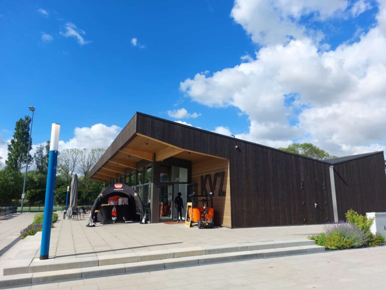 Op het vernieuwde sportpark Hoornse Veld schitteren de nieuwe clubpaviljoens van korfbalvereniging KVZ’23 en tennis- en padelclub TOPZ. Ontworpen als een samenhangend geheel, vormen ze een familie, maar behouden elk hun eigen karakter. De balans tussen uniformiteit en individualiteit komt tot uiting in maatvoering, vorm, detaillering en kleurgebruik. Dankzij de unieke ligging aan de sportvelden, de oriëntatie op de zon en de specifieke wensen van elke club krijgt elk paviljoen een eigen identiteit.